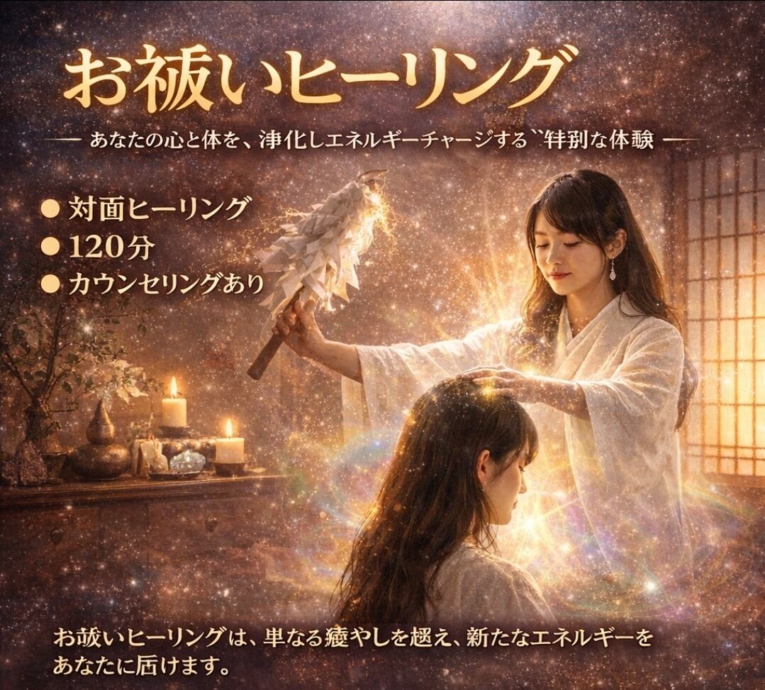お祓いヒーリングは、単なる癒やしを超え、新たなエネルギーをあなたに届けます。